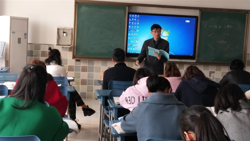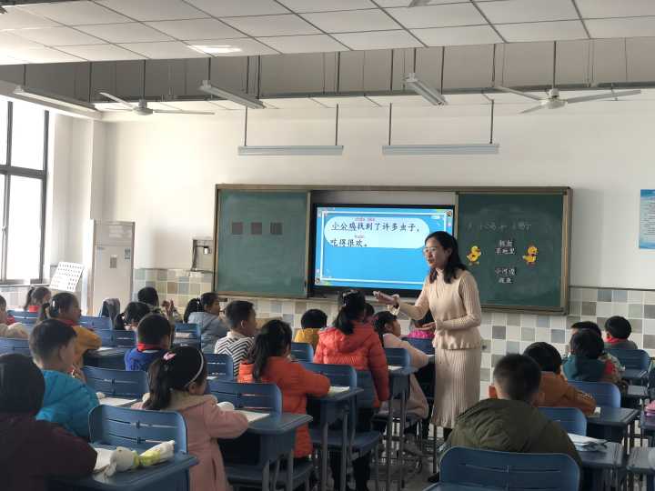 活动第一环节由优秀青年教师柴琳琳老师执教《小公鸡和小鸭子》,柴老师用其丰富的肢体语言,灵活的教学方式,生动有趣的环节游戏,牢牢吸引了学生的注意力,让孩子们在轻松愉悦的氛围中接受新知。孙莉芬老师和张荔荔老师进行评课,他们一致肯定柴老师的语文素养,能化解教学重难点,有意识的渗透相关的语用。薛校长认为柴老师教材解读到位,情景教学有趣,识字教学扎实,语词教学有法,对话指导高效。