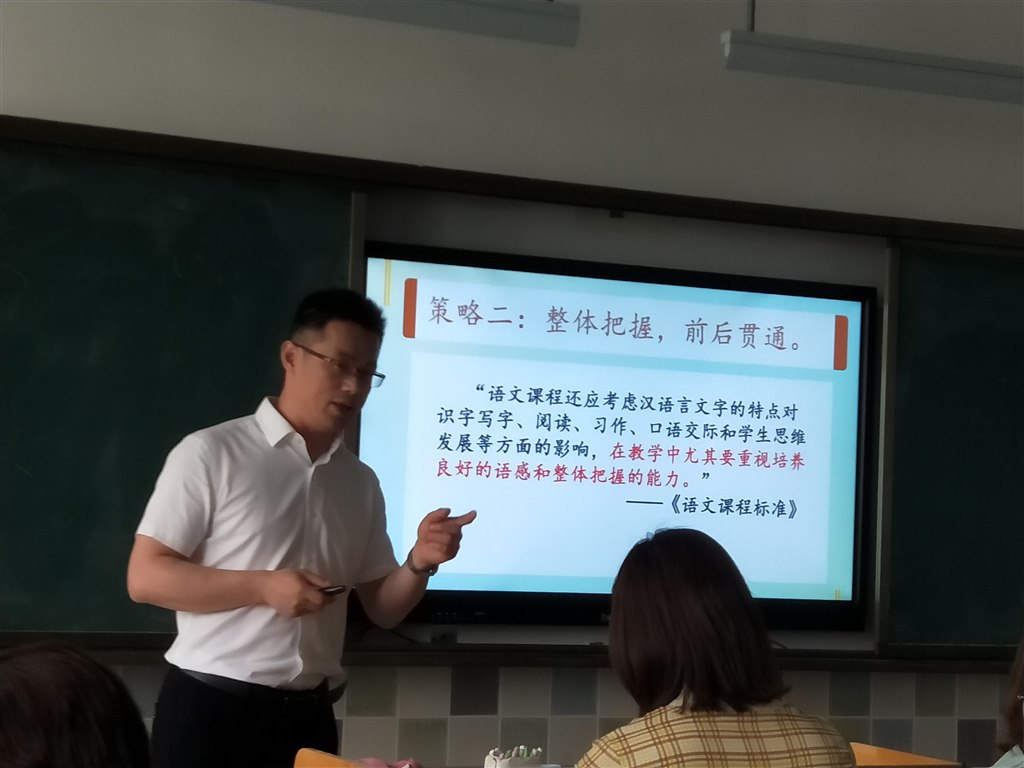 最后潘校长又针对近期的评优课,对后期的语文课堂教学,对文本解读能力提出了更高的要求。提出在文本解读过程中要正确全面,定位准确,进行个性化的解读。还给与了我们今后实践过程中需要的策略。要注意转换角色,进行多维对话;要整体把握前后贯通;要注意扣词析句,突出重点;开放视野,多元解读;知人论世,走进读者。讲话深入浅出,让每位老师都受益匪浅。