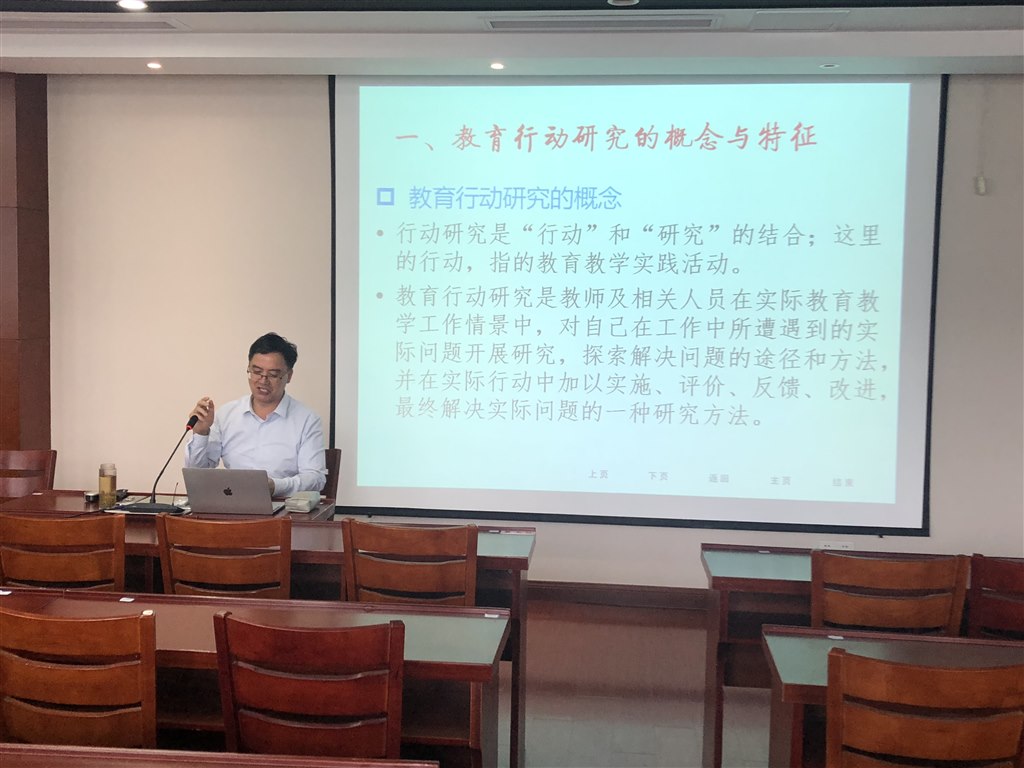 5月27日下午,我校潘金林教授在行政楼2楼会议室为学校全体教职工做了关于小学教育科研中的行动研究这一讲座。潘教授结合我校老师的发展现状和学校发展规划,对教师未来前景进行了合理展望。讲座由孙建顺校长主持,全体教职工一同聆听了潘教授的精彩演讲。