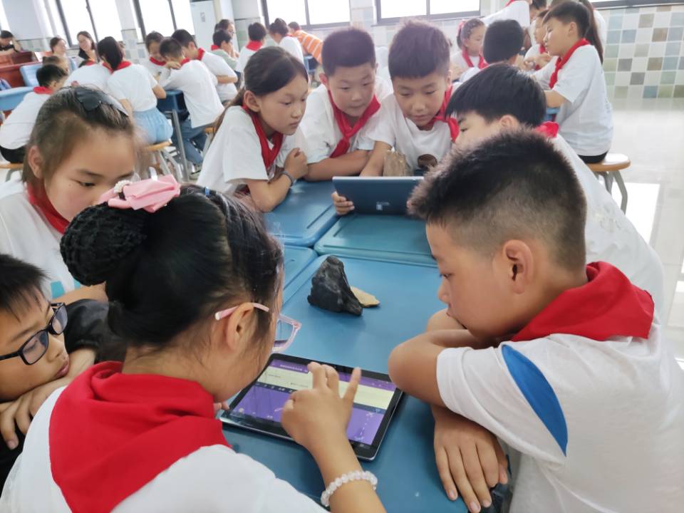 首先,孟河实验小学臧薇老师执教《探秘斧劈石之采访我能行》。臧老师在课前做了精心的准备,结合本地的特色资源“斧劈石”进行课程的架构。结合四年级学生的特点,从学生的兴趣出发,将学生分成几个研究小组,指导学生充分运用学过的综合实践的研究方法,开展力所能及的研究,并能够将研究成果进行初步的展示。本课的另一大亮点是充分运用便捷高效的软件“Onenote”,来实现课堂的高效和有效性,带领学生真正开展与时俱进的高效的综合实践活动课程。