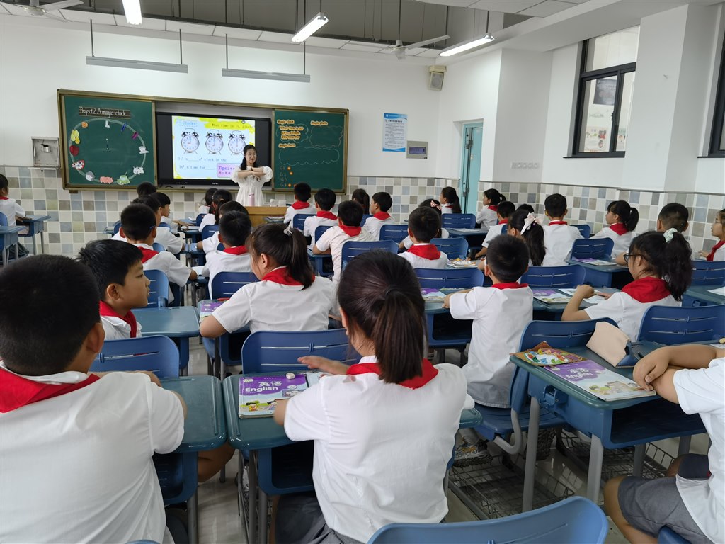李敏老师首先利用chant复习数字,活跃课堂氛围;然后联系学生生活实际,让学生讨论生活中看到的数字,活学活用。接着,导入了时钟,复习问答时间的句型,并创设“咒语”,让普通的钟变成了有魔法的钟。通过这个魔法钟,复习了三下五至八单元里的重点句型。最后,通过小组活动制作魔法钟进行综合提升,并渗透育人价值,告诫学生要珍惜时间。作为一名新手老师,李老师身上存在着许多生长点和闪光点,她的拼劲和用心让我们感动。