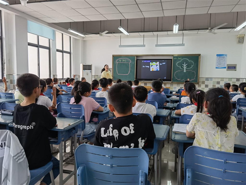 为了增进学校间的友谊,促进学校间的共同成长与发展,6月16号下午,我校在新北区教研室薛国民老师的指导下开展了集团化办学下新北区小学英语区域课堂转型活动,来自结对共建学校孝都小学、万绥小学、薛家实验小学王华老师领衔的优秀教师牵手学校,西夏墅中心小学,浦河实验等兄弟学校的30多位老师及我校全体英语老师共同参与其中,研讨学习。