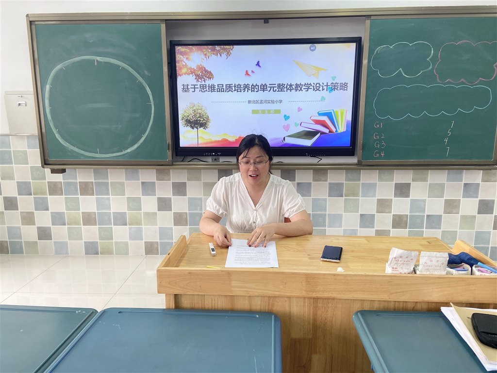欣赏完四位老师的课,我校王玉珍老师做了“基于思维品质的单元整体教学策略”的微讲座 ,王老师分析了当前小学英语单元教学中思维品质培养的现状,并针对此给予了应对策略,呼吁我们教师应当基于单元整体,制定思维目标;基于思维目标,再构文本内容;基于多元思维,创新活动设计。