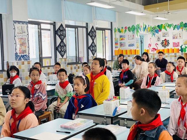 上午第一节课,由翁丽燕老师执教美术课《天外来客》,这节课是一节综合性很强的美术课。从整体上来看,本课无论从教学内容,教学设计还是组织形式都体现了很新的教学理念;教学思路清晰,目标明确,教学中突出了学生的主体地位,注重培养学生的各种能力,课堂开放而富有活力。听课教师一致认为,这是一节学生感兴趣且有创意的美术课,让人感到耳目一新。