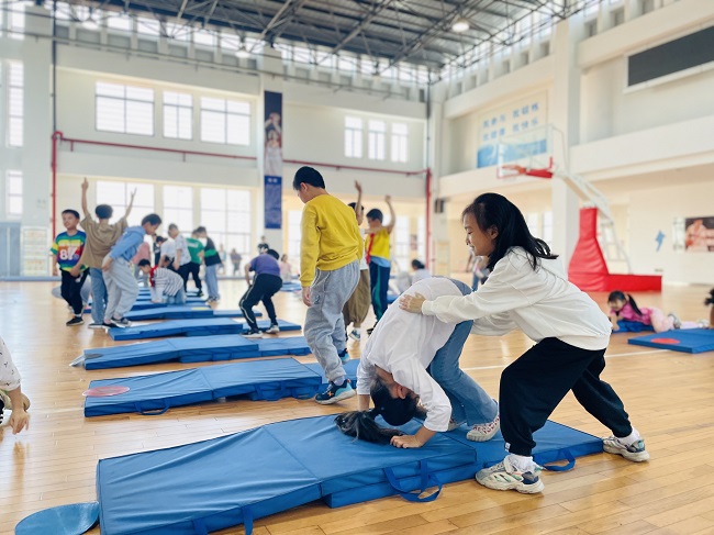 第二节课,由吕娟老师执教水平一体育课《前滚翻》。她精心准备、巧妙设计,以娴熟的教学功底、丰富的教学经验、扎实有效的课堂练习,通过支撑游戏、滚动游戏等帮助学生体会发力部位,建立空间感;通过合作学练,引导学生相互观察与帮助,在星级评价与分层教学中,让学生更深刻的掌握了动作技术要领,更在课堂中取得了良好的教学效果。