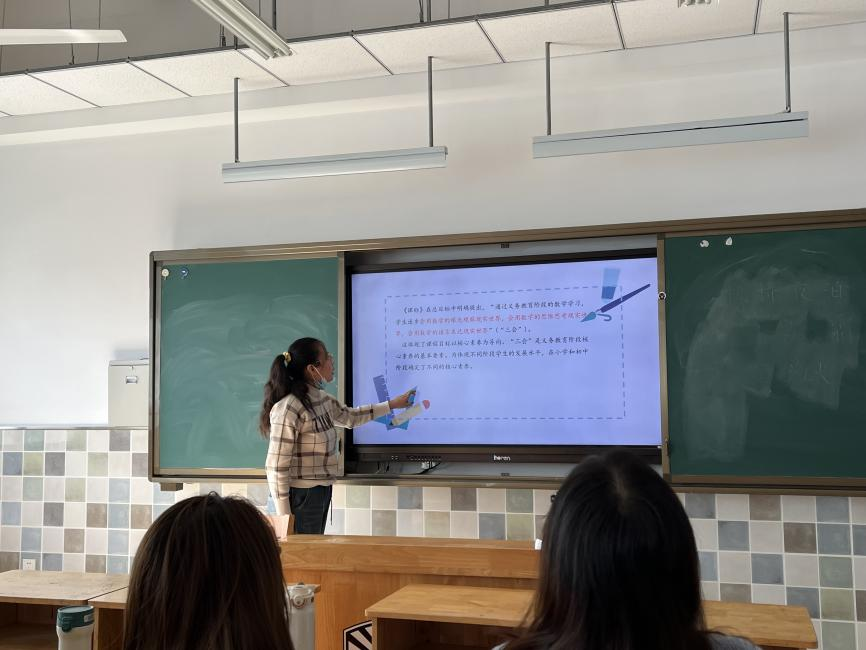 最后孙建顺副校长肯定了汤钰老师和徐春霞老师的理论导读,希望全体教师在今后的教学中充分落实会用数学的眼光观察现实世界,会用数学的思维思考现实世界,会用数学的语言表达现实世界的“三会”数学核心素养。