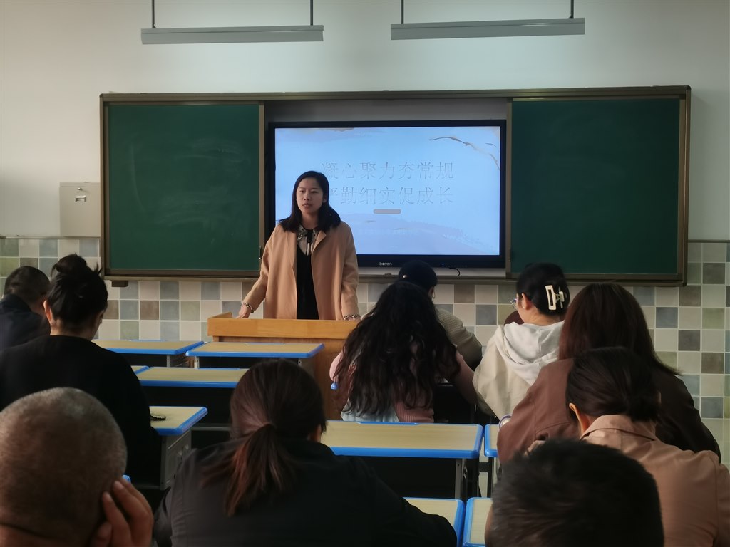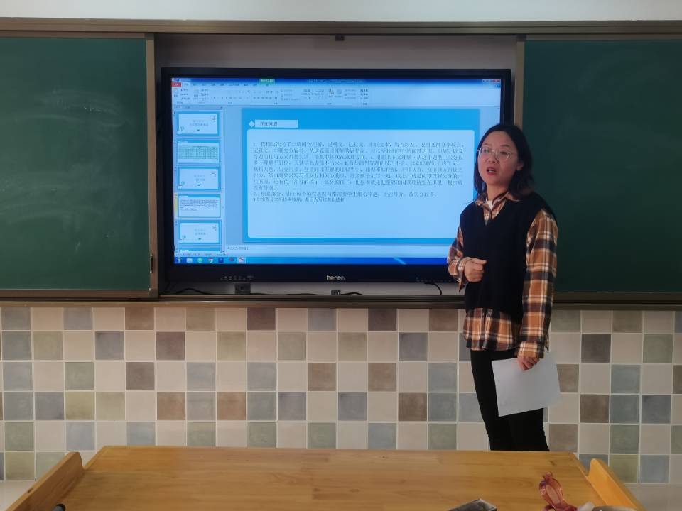 首先,朱主任以“凝心聚力夯常规,严勤细实促成长”为主题,对开学以来各位老师的备课、听课记录及作业批改等方面进行分析。朱主任先肯定了教师们的优点,如能进行个性化的二次备课,听课记录细心有思考,作业批改认真等。然后对下一阶段的教学给出了六条切实可行的建议,一夯实语文基础,积累运用知识;二紧扣课后习题,贯穿单元目标;三深入钻研课标,落实语文要素;四关注答题习惯,给予方法指导;五分层布置作业,满足不同需求;六梳理知识结构,指明复习方向。