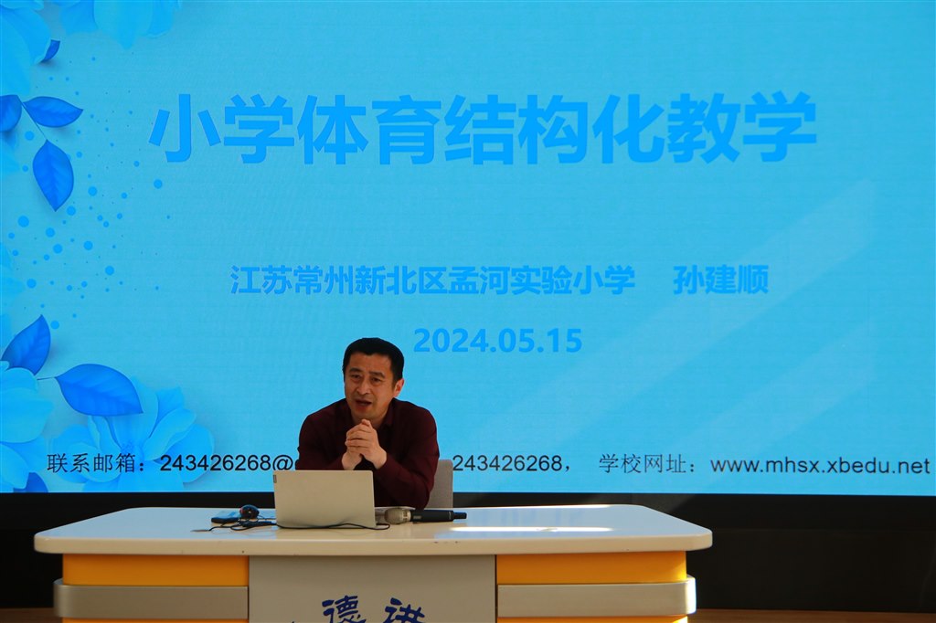 专题讲座环节,由工作室领衔人孙建顺教授以《小学体育结构化教学策略》开展讲座,帮助成员们明晰了结构化教学的内涵特征,并结合实际案例重点讲解了结构化教学的六大具体实施策略。