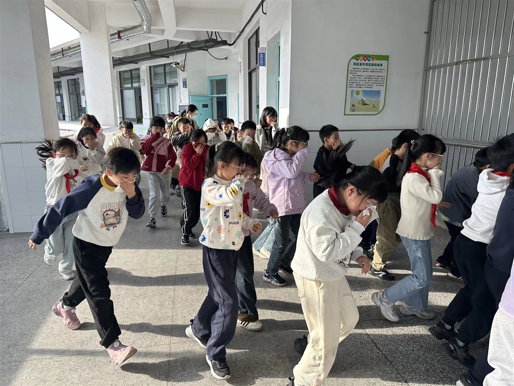 下午14时45分,随着“呜——”警报声响起,消防疏散演练正式开始。各班班主任迅速组织学生用手捂住口鼻,弯腰低头,沿着预定疏散路线快速、有序地向操场安全区域撤离。过程中,学生们听从指挥、不推挤、不喧哗,动作规范且迅速;楼道、楼梯口等关键位置的值守教师,主动引导人流,及时排查疏散隐患,避免拥挤情况发生。
